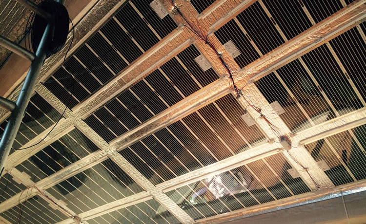 Comme le soleil au Zenith, le plafond chauffant est situé au-dessus de nos têtes, dissimulé derrière un plafond tendu.